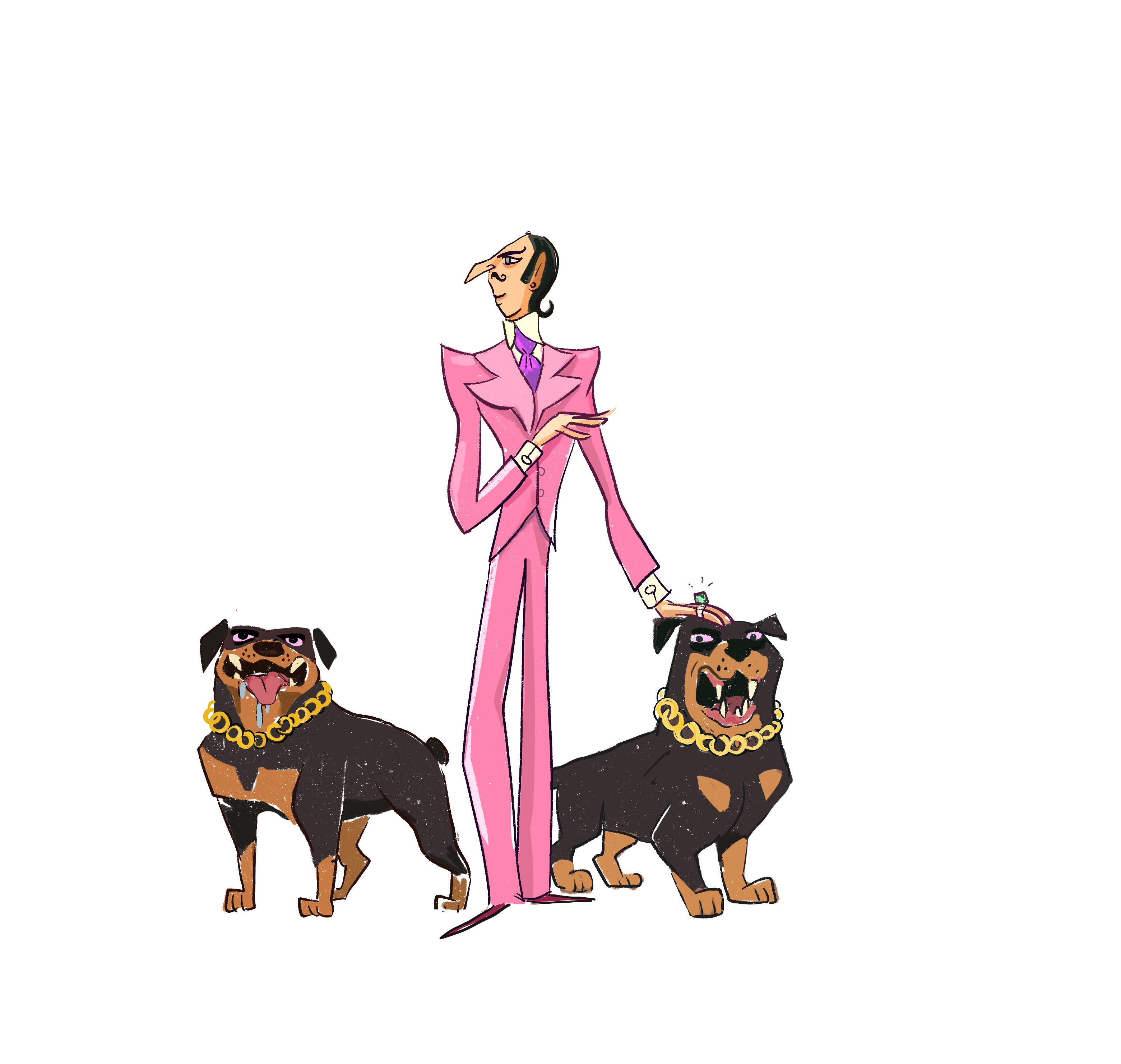 The owner of 'Water Wonder', an amusement park, is sassy, loves his pink business suits and is obsessed with his two beloved rottweilers.